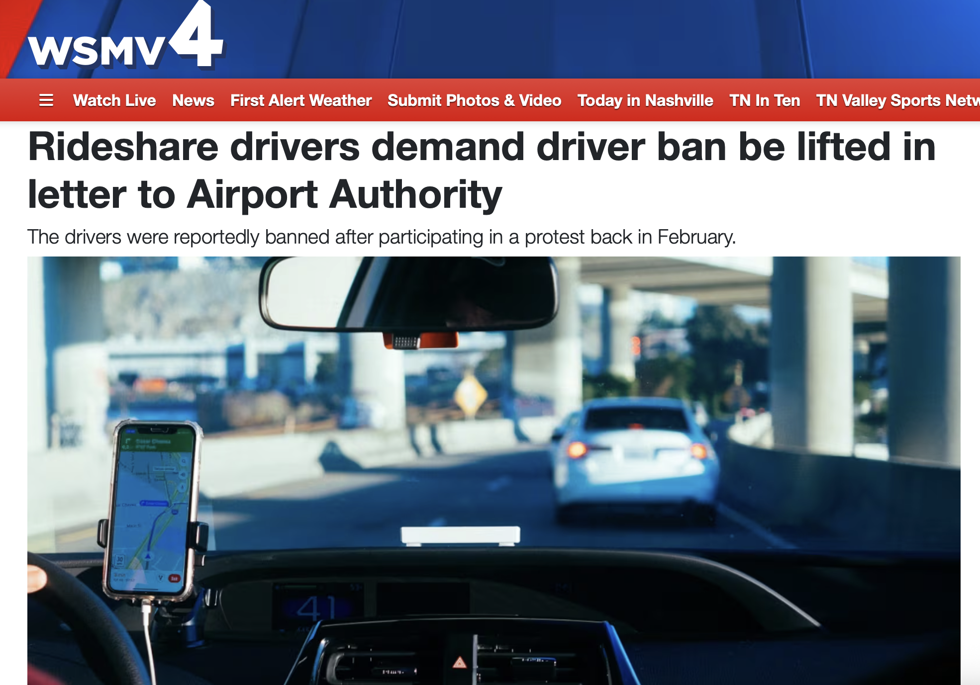 Nashville airport, rideshare drivers union clash over banned, suspended drivers, protests